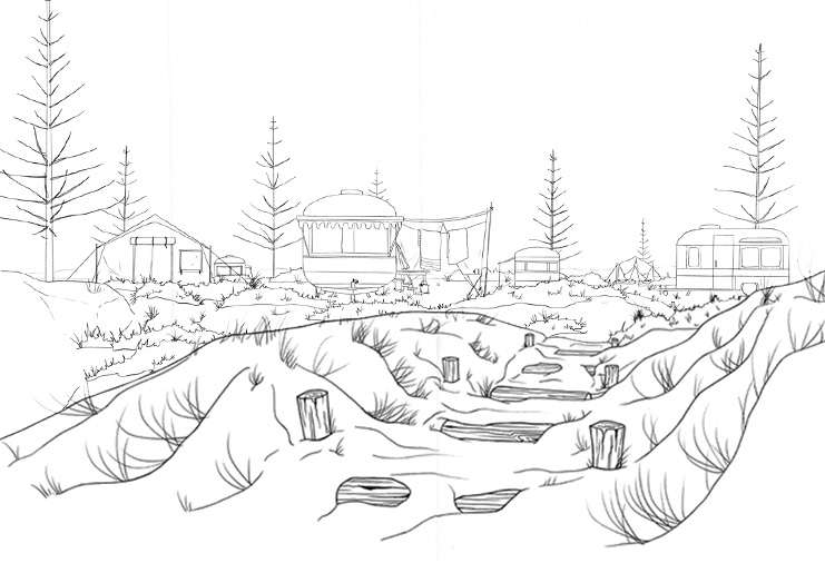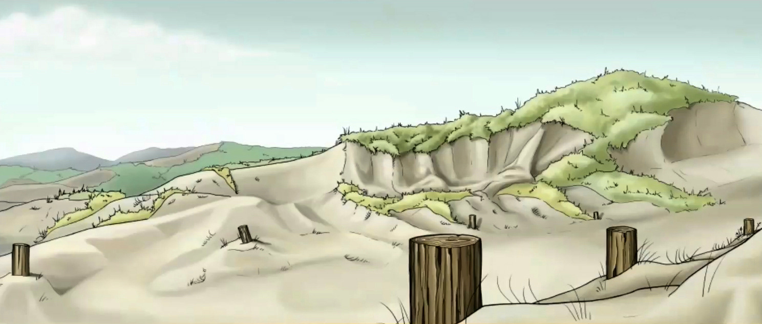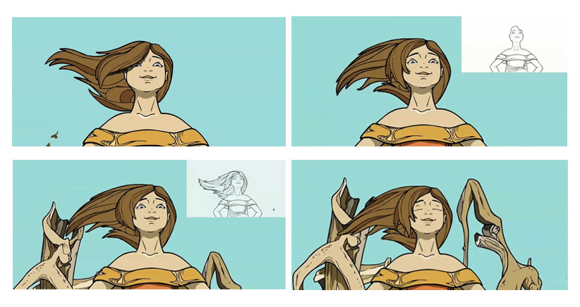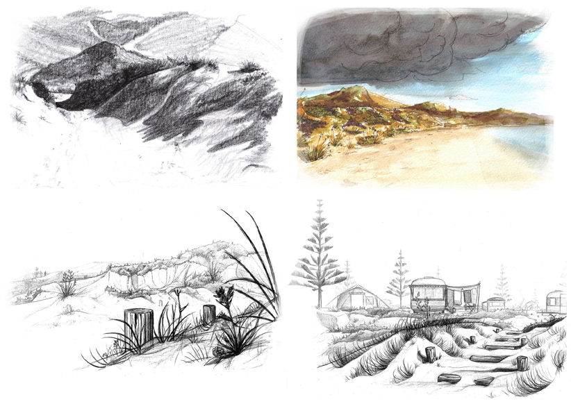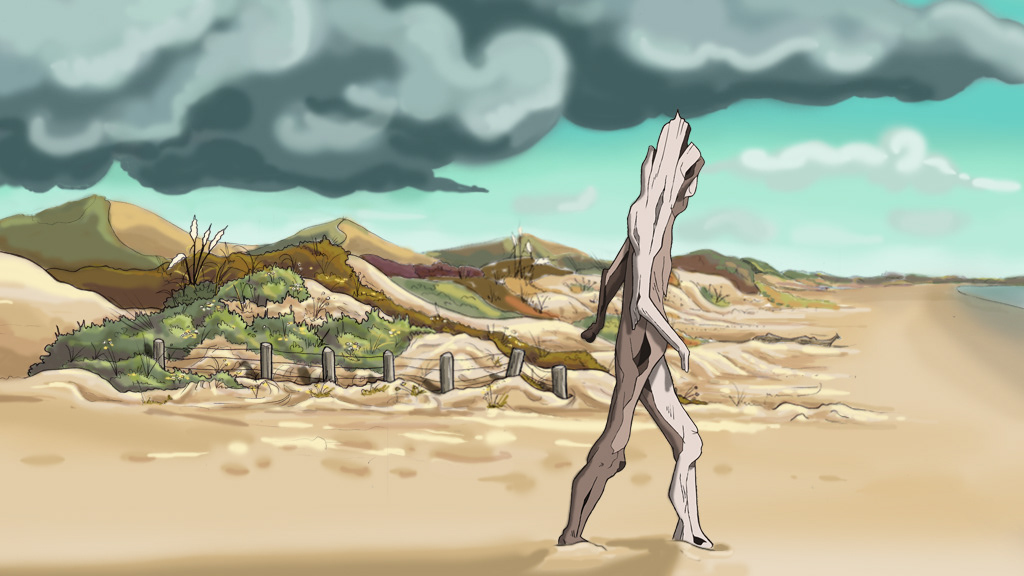 Background art and design for a student animation project. Hand drawn and digitally painted.